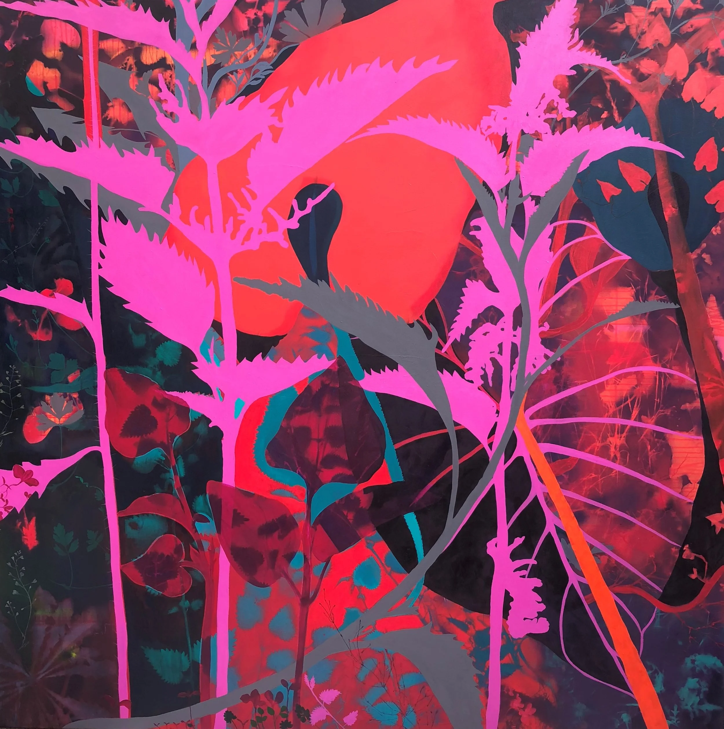 Otherworldly Botanicals, oil & spray paint on canvas, 100 x 100 cm / 39.5 x 39.5 inches