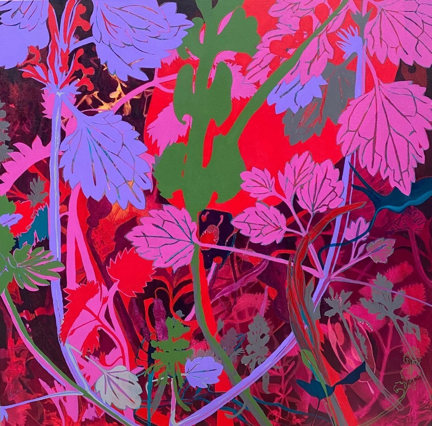 Violet Botaniscape, acrylic on canvas, 80 x 80 cm / 31.5 x 31.5 inches