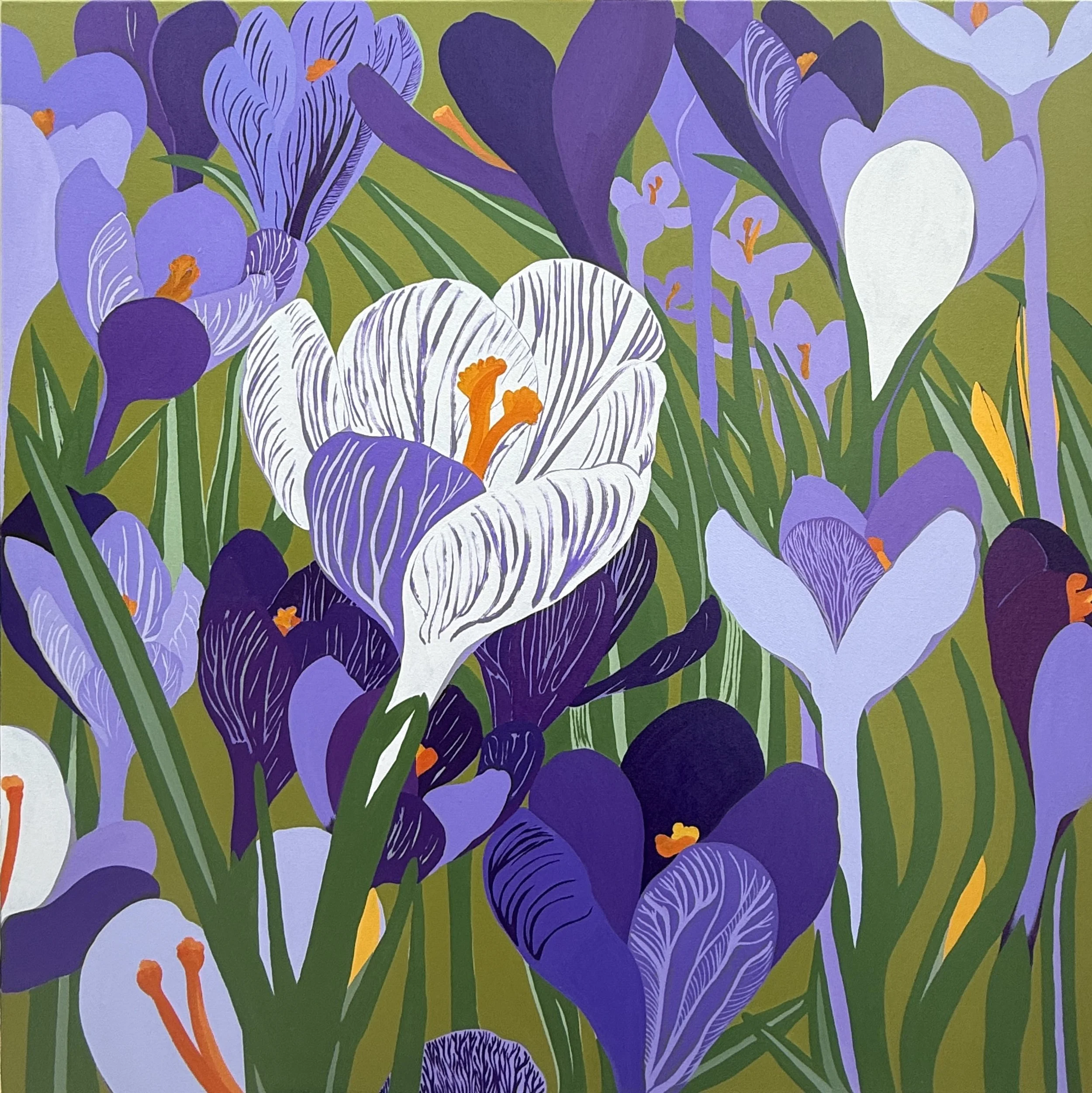 Spring Crocuses, acrylic on canvas, 100 x 100 cm / 39.5 x 39.5 cm