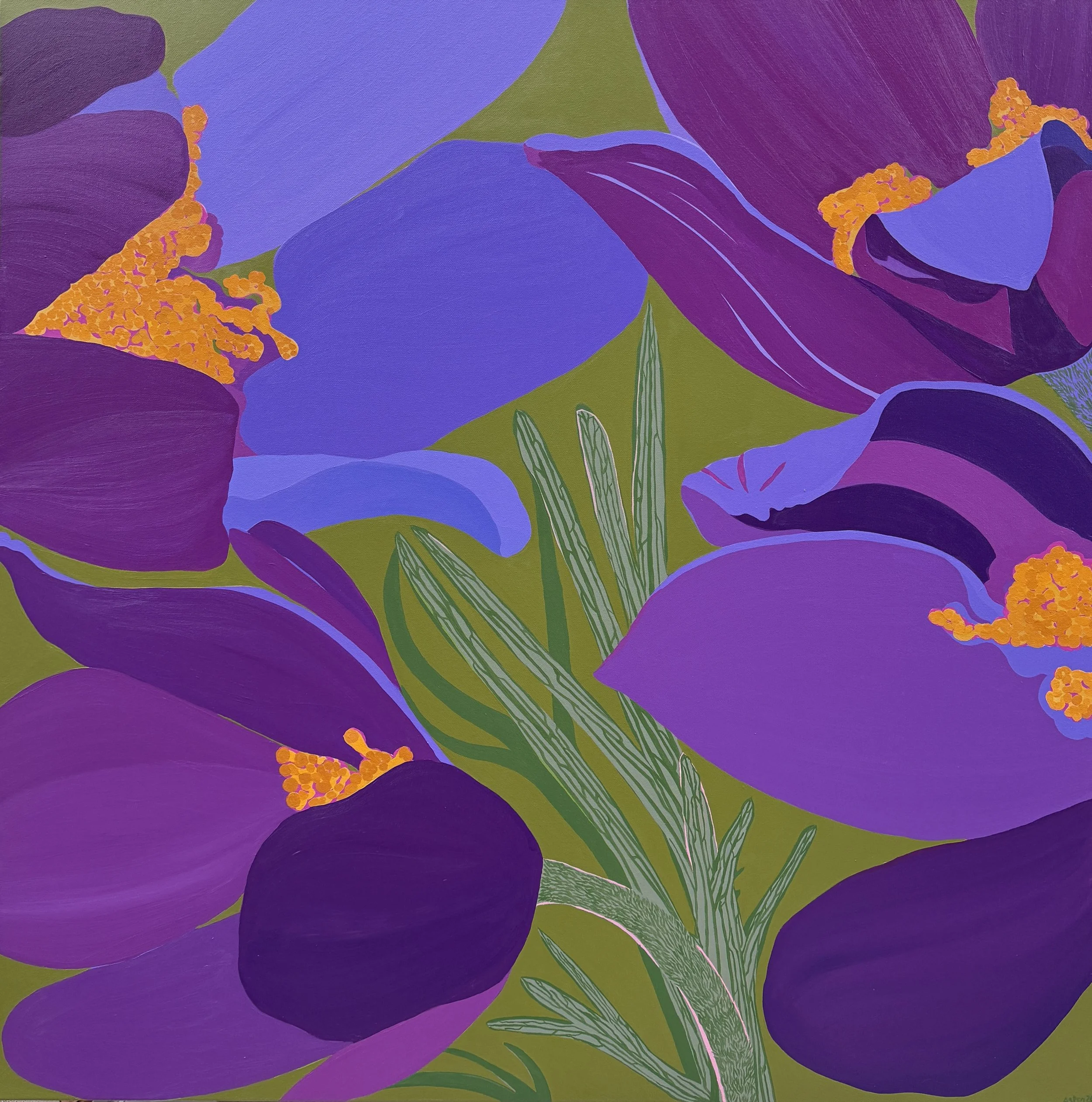 Striped Crocuses, acrylic on canvas, 100 x 100 cm / 39.5 x 39.5 inches
