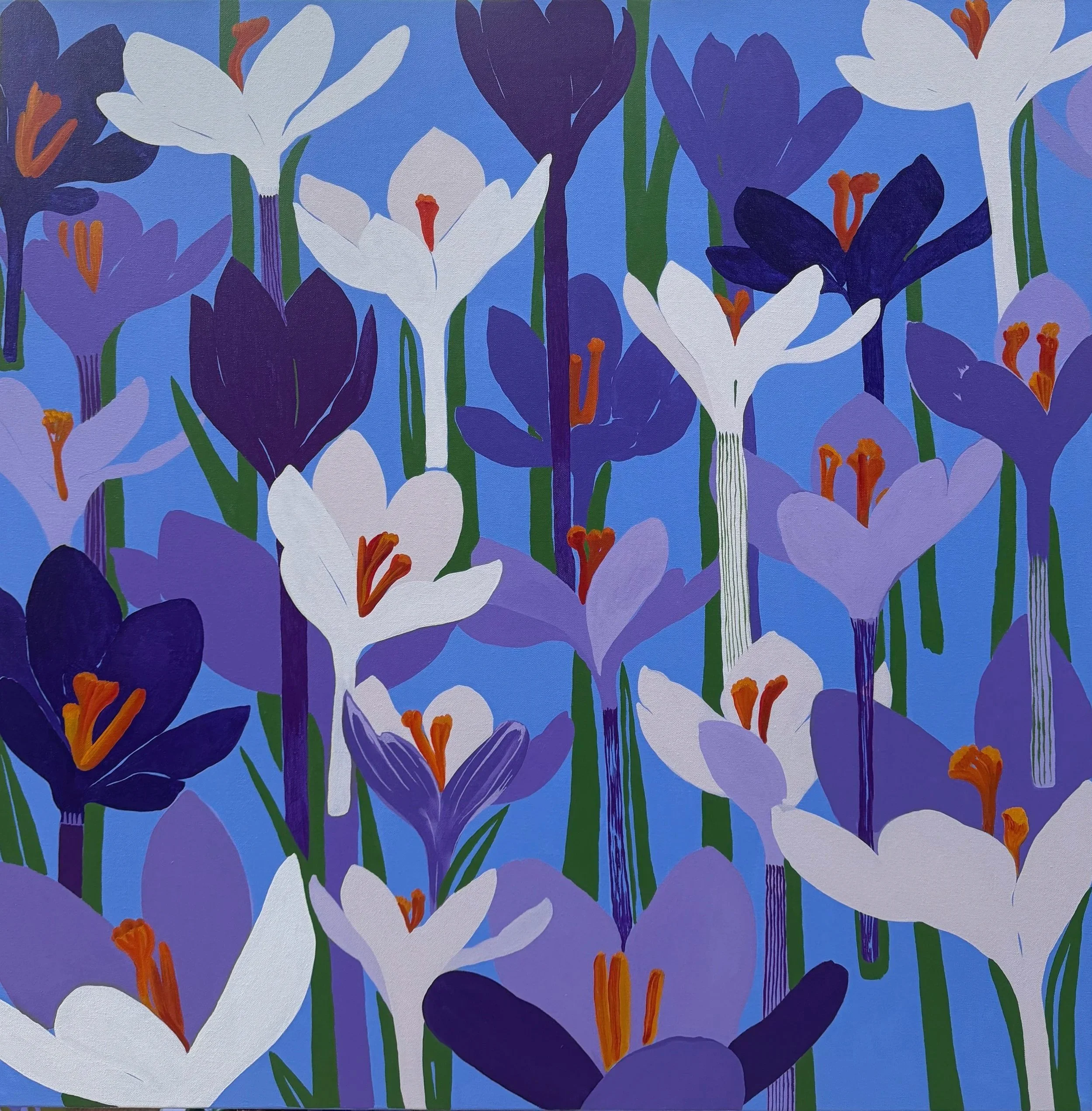 Crescendo of Crocuses, acrylic on canvas, 100 x 100 cm / 39.5 x 39.5 inches